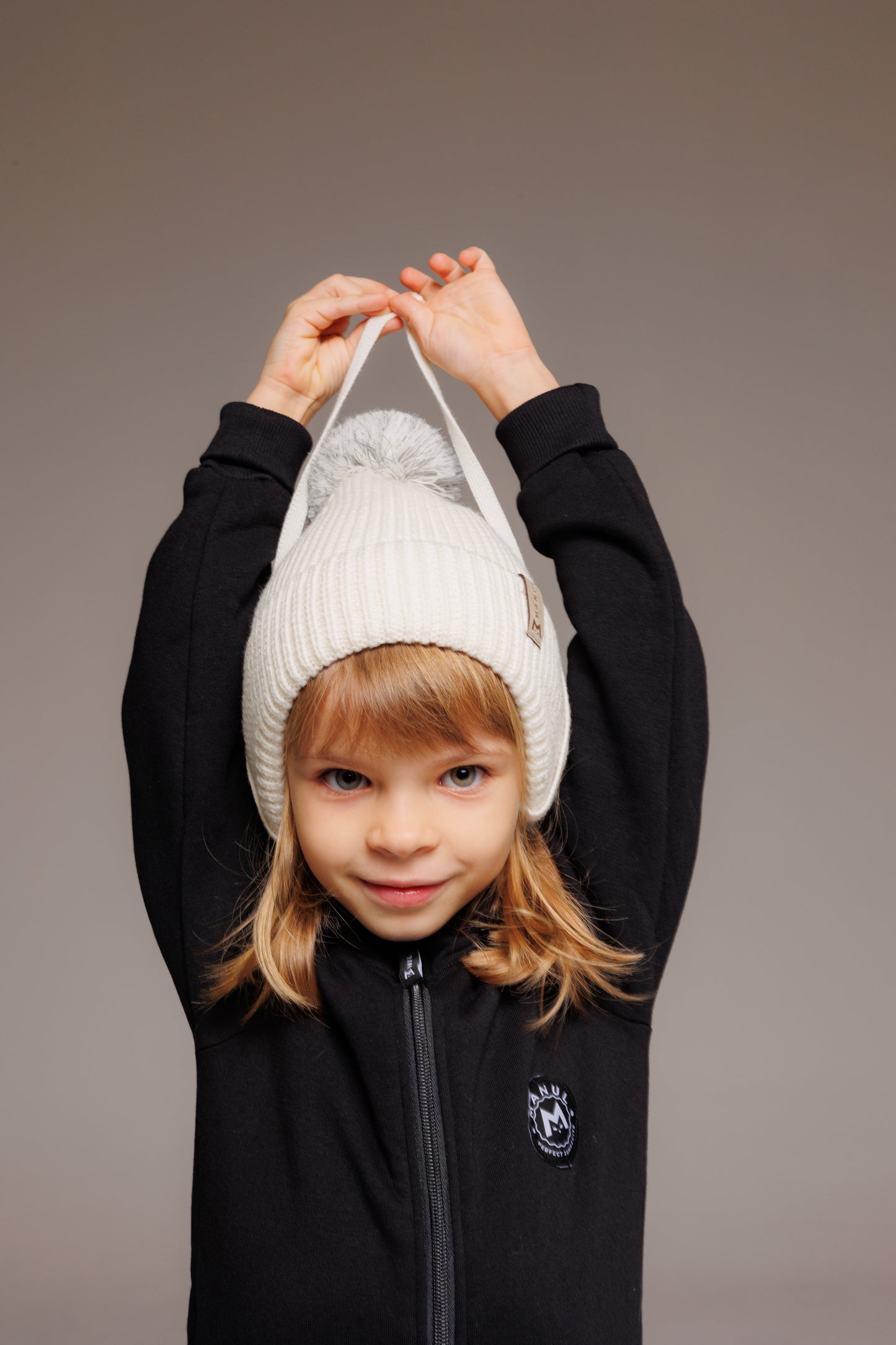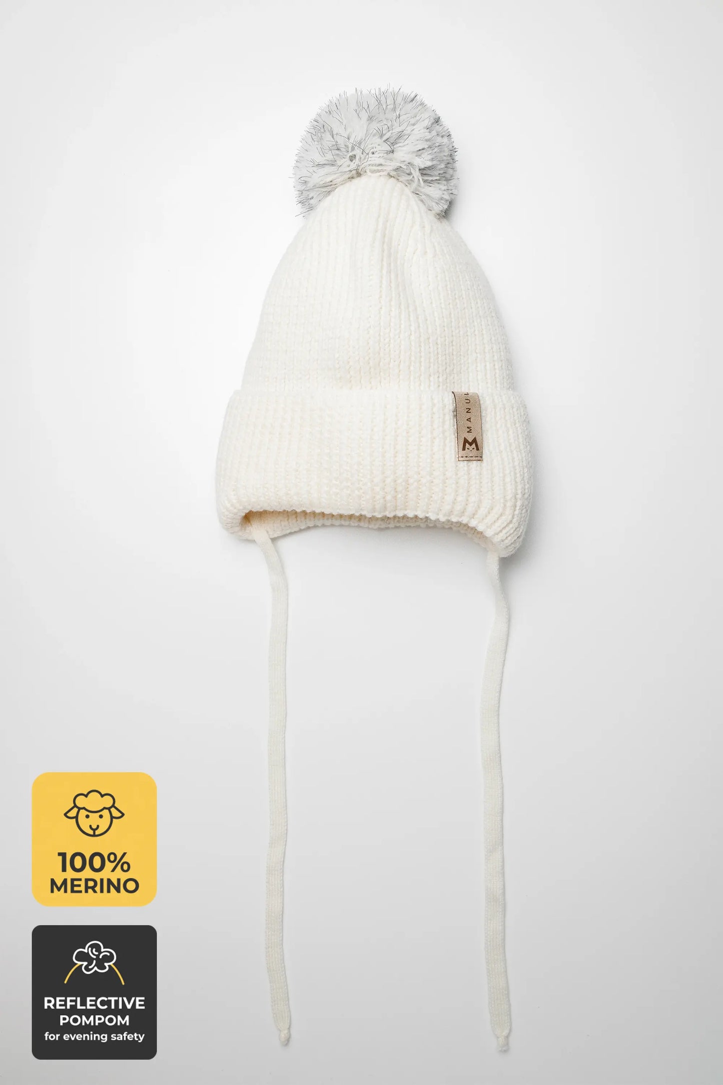 Winter beanie Vanilla — 100% extra fine merino wool, wool-fleece lined, reflective pom-pom