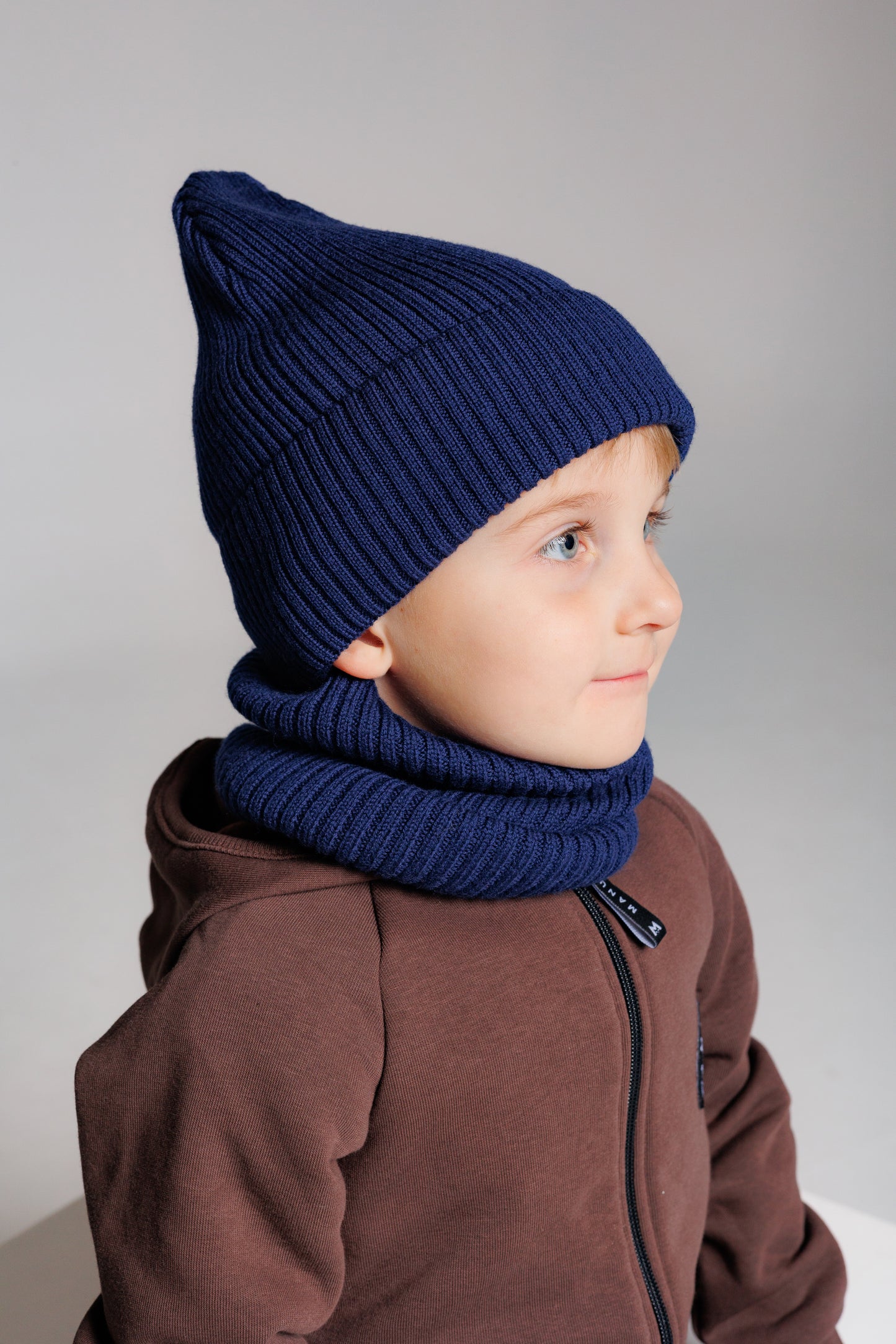 Set Navy — merino beanie & tube scarf, 100% extra fine merino wool